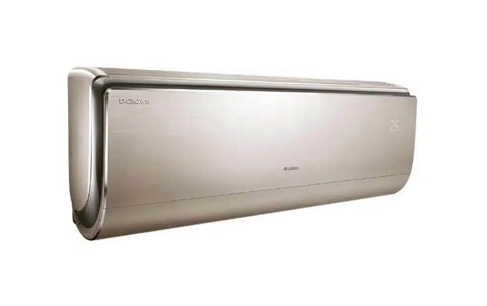Klimatyzator Gree U-Crown Klimatyzator pokojowy U-Crown charakteryzuje się eleganckim, opływowym kształtem. Model dostępny jest w dwóch wariantach kolorystycznych srebrny i szampańskie złoto, z delikatnie szczotkowaną fakturą lub w połysku. Posiada wysokie parametry oraz szeroki wachlarz funkcji. Cechuje go efektywna praca zarówno w trybie chłodzenia, jak i grzania.